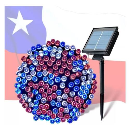 Solar Lights Christmas Garland de 10 metros e 100 LED Características: -Painel solar 2V 100MA.-Bateria de 1,2V 600 mAh. -Carga total da bateria entre 6-8 horas. -É um produto ecológico. -Pode ser utilizado em casamentos, jardins, praças, festas, eventos. -Eles desligam e ligam automaticamente, graças ao sensor de luz. -Eles são tão brilhantes quanto os LEDs que se conectam à rede elétrica. -Eles são simples e rápidos de instalar. -São autossuficientes e não precisam de eletricidade, portanto podem ser instalados em qualquer lugar. -Função: ignição intermitente ou fixa.