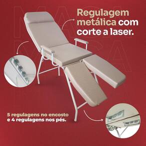 A maca bi-perna com apoio de braços foi projetada para proporcionar o máximo de conforto e funcionalidade durante os atendimentos.