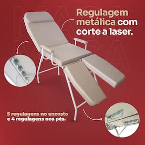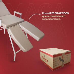 A maca bi-perna com apoio de braços foi projetada para proporcionar o máximo de conforto e funcionalidade durante os atendimentos.