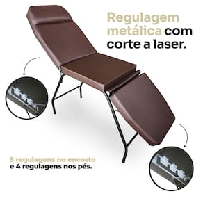 Conforto Superior: Estofado macio e suporte ergonômico para longas sessões. Espuma densidade D 28 com 5 cm de espessura Durabilidade: Construída com materiais de alta resistência para garantir uma longa vida útil. Praticidade: Por conta das suas regulagens proporciona várias posições para atender os mais diversos tipos de procedimentos. POSSUI REGULAGENS DE AÇO GALVANIZADO com corte a laser, sendo 5 níveis de regulagens no encosto e 4 níveis de regulagens nos pés. Estilo Moderno: Design elegante que complementa qualquer ambiente de trabalho. Peso Suportado: Até 160 kg Distribuídos.