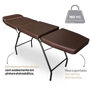 Modelo: Maca 3 posições Reclinável Estofado: Estofado de alta qualidade no tecido facto, o tecido Facto é resistente ao uso de Álcool 70° para limpeza e higienização. Material: Estrutura Aço com pintura eletrostática e MDF estofado Funcionalidade: Ideal para Estética, Massagem, Podologia e Tattoo Dimensões: 75 Alt. 54 Larg. 180 Comp. cm Peso: 20 kg