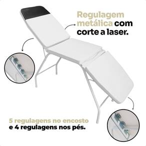 Maca 3 Posições Branca com Detalhe Preto Reclinável Estética Massagem - Versátil O QUE ACOMPANHA: - 1x Maca 3 Posições Branca com Detalhe Preto - Versátil DESCRIÇÃO DO PRODUTO Maca 3 Posições Branca com Detalhe Preto - Versáti:l foi projetada para atender às necessidades de profissionais das áreas de estética, beleza e saúde. Com ajuste prático em três posições e estrutura dobrável, ela proporciona versatilidade e eficiência no dia a dia. Seu revestimento em bagum resistente facilita a higienização, enquanto sua estrutura metálica suporta até 120 kg, garantindo segurança e durabilidade. BENEFÍCIOS: - Durabilidade: Estrutura metálica reforçada com pintura anticorrosiva. - Conforto: Estofado em bagum resistente e fácil de limpar. - Versatilidade: Regulagem em três posições para diferentes procedimentos. - Praticidade: Formato dobrável que facilita o transporte e armazenamento. - Resistência: Suporta até 120 kg para diário. ESPECIFICAÇÕES TÉCNICAS: - Cor: Branca com Detalhe Preto - Material do estofado: Bagum, resistente e fácil de higienizar - Estrutura: Metal pintado com tratamento anticorrosivo - Capacidade de peso: Suporta até 120 kg - Dimensões: Comprimento: 175 cm Largura: 54 cm Altura: 74 cm ÁREAS DE APLICAÇÃO: - Clínicas de estética e saúde - Salões de beleza - Estúdios de tatuagem - Espaços de relaxamento e massagem MODO DE USO: Posicione a maca sobre uma área plana e estável. Ajuste a inclinação conforme a técnica ou procedimento desejado. Certifique-se de que os mecanismos de travamento estão bem fixados para garantir segurança ao cliente durante o atendimento. E ENVIO: SOBRE A NOSSA LOJA: Há mais de 30 anos, somos especialistas na fabricação de móveis para profissionais das áreas de estética, beleza e tatuagem. Nosso compromisso é oferecer qualidade, funcionalidade e respeito aos nossos clientes, proporcionando produtos que melhoram o desempenho em cada atendimento. Garanta a Maca 3 Posições Branca com Detalhe Preto agora mesmo e eleve o padrão dos seus atendimentos com um produto confiável, prático e acessível. Perfeito para otimizar sua rotina e proporcionar maior conforto aos seus clientes Marca: Não Informado