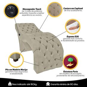 Maca com Almofadas e Massageador Vibroterapia Capitonê Estética Veludo Marrom Castor SOFA STORE