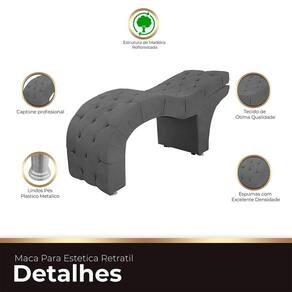 DIMENSÕES DA MACA Largura total:190cm; Profundidade total: 65cm; Altura fechado:0,90cm; Altura do encosto aberto:115cm; Peso suportado: 145kg. Peso:32kg;A GARANTIA É DE FÁBRICA