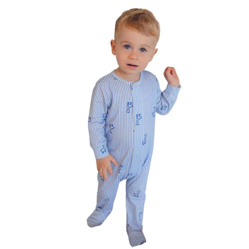 Macacão Magnético Listra Azul com girafinhas - Recém nascido