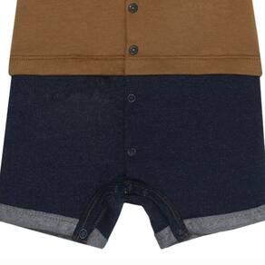 Macacão Bebê Menino Curto Nozes Caramelo / Marinho - Sonho Mágico Sonho Mágico: Conforto e Estilo para o Seu Bebê!