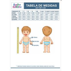 Tamanhos Indicados: P - Veste 2 a 4 meses M - Veste 4 a 6 meses G - Veste 6 a 9 meses GG - Veste 9 a 12 meses