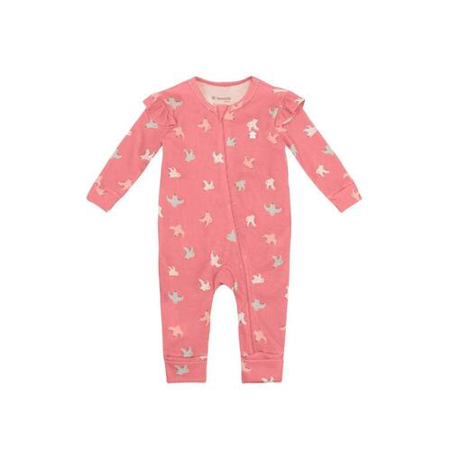 Encante-se com o macacão para bebê menina da Brandili, confeccionado em ribana macia e confortável. Com uma linda estampa colorida de passarinhos, ele possui gola redonda, mangas longas e um charmoso detalhe de babado que traz um toque especial. O fechamento por zíper facilita na hora de vestir, enquanto os punhos reversíveis garantem conforto para os pezinhos. Ideal para criar looks adoráveis e práticos, este macacão é perfeito para os momentos de diversão da sua pequena!
