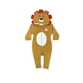O Macacão Bebê Menino Leão Marrom - Brotinhos é composto por suedine marrom e off white em todo o corpinho. Além disso, possui zíper na parte frontal que facilita a colocação e bordado de ursinho no peitoral e na touca. O grande diferencial se encontra na touca, onde possui aplicação de orelhinhas e da juba do leão, proporcionando muita fofura!