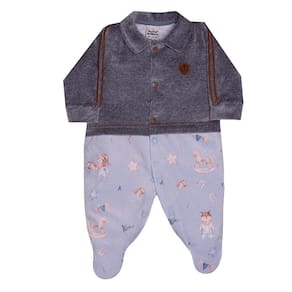 Macacão De Bebê Longo Plush Sonho Mágico Estampado Ref: 131723 Pp/M - Azul médio - P