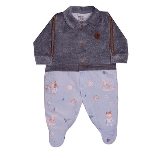 Macacão bebe plush Sonho Mágico, perfeito para deixar seu pequeno quentinho e muito bem vestido. Ideal para momentos especiais.