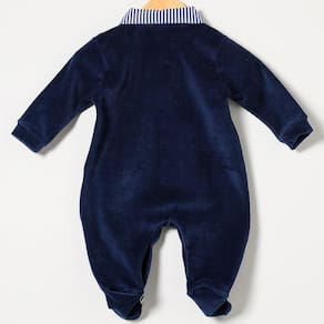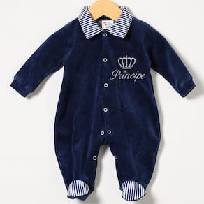 Macacão de bebê menino manga longa em plush Príncipe cor azul marinho com detalhe bordado de coroa e palavra "Príncipe", possui fechamento frontal com botões de pressão. O macacão para bebê é uma roupinha muito útil, pois quando o bebê está vestido com um macacão ele estará pronto para qualquer atividade, além de deixar seu bebê super fofo. Disponível nos tamanhos RN, P, M e G.
