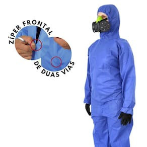 - Melhor conforto térmico - Tratamento Antiestático - Maior mobilidade - Capuz de 3 partes - Zíper bidirecional e aba protetora - Não contém látex em sua composição - Elástico no punho para ajuste no dedo polegar - Elástico na cintura, punhos e tornozelos