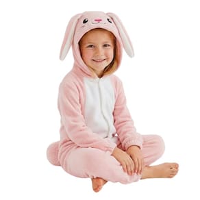 Macacão infantil em fleece plush, ideal para manter a criança aquecida e confortável. Possui capuz com detalhe de coelho, toque macio e acabamento delicado. Modelo prático, confortável e perfeito para uso em dias frios, momentos de descanso ou fantasias temáticas. O fechamento facilita o vestir e garante maior conforto durante o uso.