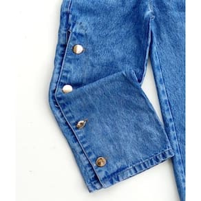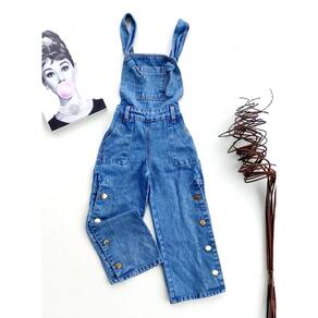 Macacão longo feminino infantil modelo wid led, confeccionado em jeans, alças ajustáveis, fechamento em botões para fascilitar a troca, dois bolsos funcionais na parte de trás, uma peça super versatíl que nunca sai da moda.