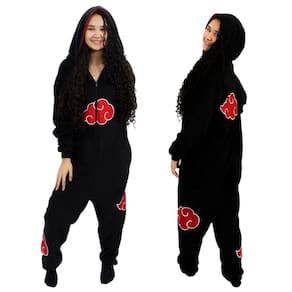 Macacão Kigurumi Akatsuki Naruto Pijama Roupa Fantasia Inverno Oficial VIZ - Preto - PP