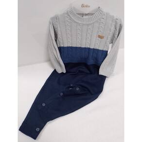 Macacão Longo Bebe Menino Malha Tricot Luxo Paraiso