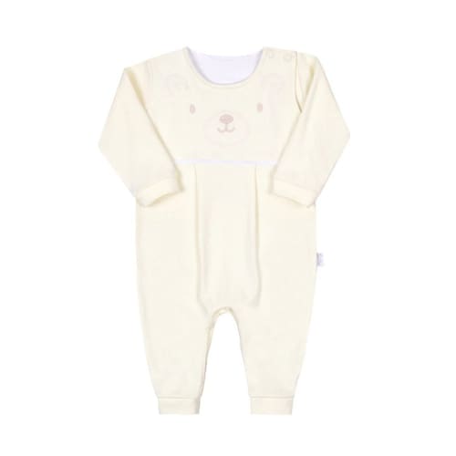 Macacão Longo Bebê Neutro Malha Coton Bordado Paraiso
