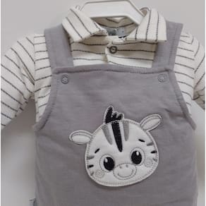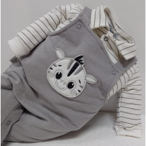 - Macacão maravilhoso finta jardineira, todo em moletino ultra confort, simplesmente super macio e confortável, que proporciona um conforto incrível ao bebê. Na parte frontal possui bordado maravilhoso de bichinho que dá um charme todo especial à peça. Abertura das alças na frente por botões de pressão. Parte interna e manga com estampa listradinha que deixa a peça ainda mais encantadora. Abertura frontal e entre pernas por botões de pressão. Simplesmente um luxo!