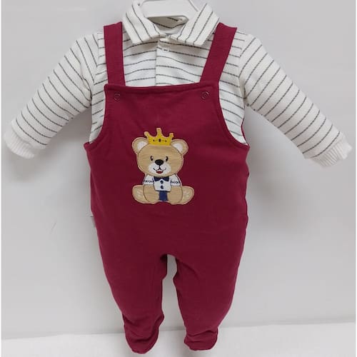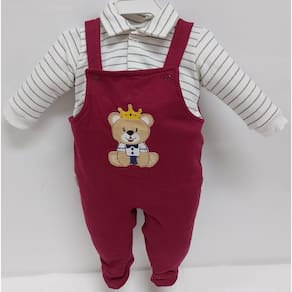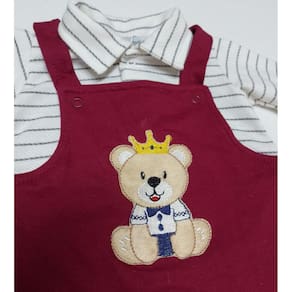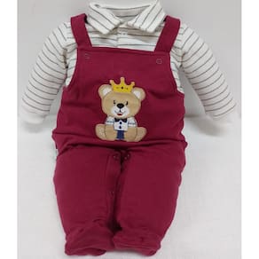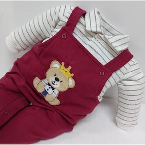 - Macacão maravilhoso finta jardineira, com seu corpo em moletino ultra confort, simplesmente super macio e confortável, que proporciona um conforto incrível ao bebê. Na parte frontal possui bordado de ursinho que dá um charme todo especial à peça. Abertura das alças por botões de pressão. Parte interna e manga com listras que deixam a peça ainda mais encantadora. Punhos ribanados. Abertura frontal e entre pernas por botões de pressão. Simplesmente um luxo!