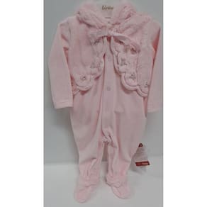 Macacão Longo Plush Bebê Menina Capuz Finta Colete Paraiso