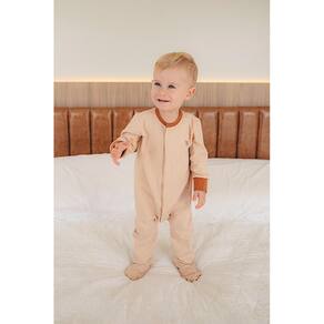Macacão Magnético Avelã, girafa de courinho decorativa no peito - 3 meses - Welpie
