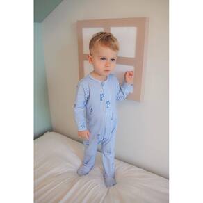 Macacão Magnético Listra Azul com girafinhas - 9 meses