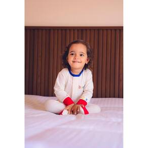 Macacão Magnético Off, detalhes vermelho e azul royal com letras e números nas mangas - Recém nascid