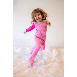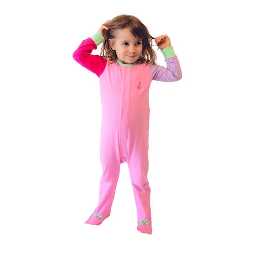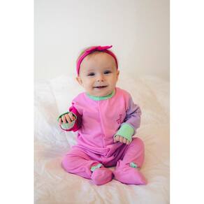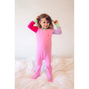 Macacão Magnético Rosa, mangas lavanda e pink e detalhes menta - 9 meses