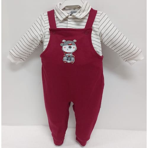 Macacão Moletino Longo Luxo Bebê Menino Bordado Zafielo 607 - G - Vermelho