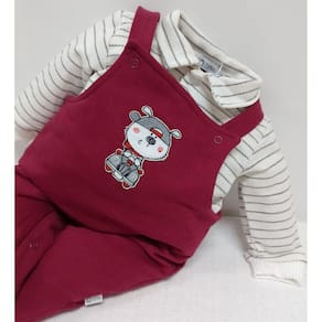 - Macacão maravilhoso finta jardineira, com seu corpo em moletino ultra confort, simplesmente super macio e confortável, que proporciona um conforto incrível ao bebê. Na parte frontal possui bordado que dá um charme todo especial à peça. Abertura das alças por botões de pressão. Parte interna e manga com listras que deixam a peça ainda mais encantadora. Punhos ribanados. Abertura frontal e entre pernas por botões de pressão. Simplesmente um luxo!
