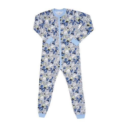 O pijama em modelo macação apresenta zíper frontal e é totalmente confeccionado em moletinho. A estampa rotativa de fantasmas e seres divertidos na cor hortênsia é o charme todo da peça. O pijama ideal para noites quentinhas e divertida dos meninos!\n