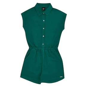 Aqui temos aquela peça super versátil, ideal para curtir bons momentos com modernidade e conforto. Nosso macacão juvenil é confeccionado em tecido sarja na cor verde, possui abertura de botões e elastano na cintura deixando o look pronto e charmoso.\n