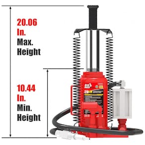O conector de garrafa hidráulico a ar é ideal para elevar máquinas pesadas, equipamentos de construção industrial, veículos agrícolas e muito mais Sua base larga e robusta adiciona estabilidade e resistência.