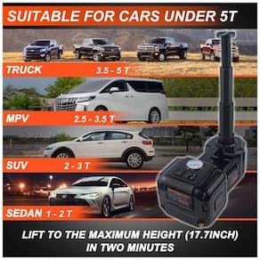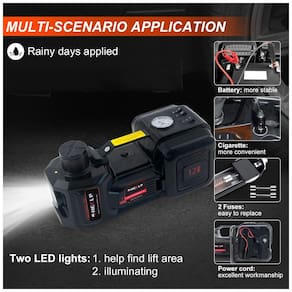Macaco para carro elétrico potente O macaco para carro elétrico E HEELP é acionado hidraulicamente, permitindo lhe levantar veículos com peso inferior a 5 toneladas 11023 libras e leva menos de 2 minutos para elevar até sua altura máxima. O motor de alta potência instalado no macaco hidráulico quase corresponde a todos os automóveis, sedan, SUV, MPV e caminhão. O potente srenth hidráulico é mais competitivo do que outros macacos automotivos. Aplicado universal O macaco hidráulico do carro possui duas formas de alimentação clipe de bateria com tomada 12V DC e isqueiro. O motor de alta potência quase corresponde a todos os veículos do , sedan, SUV, MPV, caminhão, picape. Além disso, você pode usar o macaco do carro em sua motocicleta ou alguns outros itens pesados. Certifique se de operar com cuidado em terreno plano e que o peso da carga nunca exceda seu MAX. Bombeamento fácil Com uma bomba infladora de pneu instalada no macaco do carro elétrico, não há necessidade de se preocupar com a emergência de pneu quebrado no meio do nada. Equipado com visor de pressão dos pneus, você pode monitorar a pressão dos pneus durante o bombeamento. Agora, diga adeus às coisas problemáticas de troca de pneus Aplicação em várias cenas Este macaco hidráulico portátil é aplicado na garagem de sua casa, viagem, oficina mecânica, fazenda ou emergência intermediária. A tomada do carro e os conectores do cabo de alimentação são à prova dágua, fique à vontade para usar em dias chuvosos. Além disso, duas luzes LED ajudam a encontrar a área do elevador e iluminam o ambiente de trabalho, mesmo na meia noite escura Marca: Não Informado