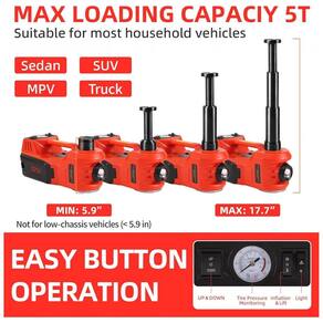 O Macaco Elétrico ROGTZ é a solução definitiva para levantar veículos de até 5 toneladas em apenas 60 segundos, alcançando até 45 cm. Com eficiência hidráulica superior aos macacos manuais, seu motor potente é ideal para sedans, SUVs e caminhões. Fácil de usar, mesmo para iniciantes. A Chave de Impacto garante trocas de pneus rápidas, com 350Nm, soquetes de 17-19mm e 21-23mm. Motor silencioso para remoção rápida de porcas. Acompanha o macaco elétrico em um case compacto, para uso rápido e organizado. Solução completa para inflar pneus, a bomba de ar integrada infla pneus de carros padrão em 2 minutos. Manômetro em tempo real para inflação precisa, com múltiplas ponteiras para carros, bicicletas e motocicletas. Ferramenta versátil para manutenção de pneus. Seguro e Confiável, o macaco elétrico possui sistema hidráulico estável com parada automática em altura máxima ou sobrecarga. Design autotravante previne deslizamentos durante o uso. Inclui chave de alívio de pressão, luz LED e luzes de advertência para trabalho seguro com pneus, mesmo à noite. Kit de Ferramentas Versátil para Reparos em Carros, esse kit de macaco portátil vem em uma caixa resistente com soquetes, bicos de ar, luvas, etc. O triângulo vermelho na caixa serve como sinal de advertência. Uma solução completa e conveniente para troca de pneus.