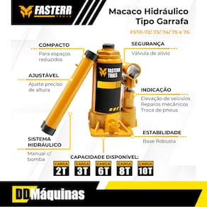 O Macaco tipo Garrafa Fasterr Tools foi projetado para elevação de carga em pisos firmes e planos. Ele não deve ser utilizado como um suporte, para essa finalidade é recomendado o uso de um cavalete ou suporte apropriado para cargas.