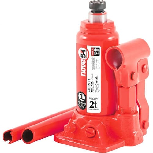 Macaco Hidráulico Garrafa 2 Toneladas 1 Estágio - Nove54 Conteúdo da embalagem 1 Macaco hidráulico tipo garrafa com 1 cabo de acionamento Aplicações e dicas de uso Indicado para elevação de veículos ou cargas de acordo com sua capacidade. Usar, armazenar e transportar somente na posição vertical para evitar vazamento de óleo. Quantidade total de óleo hidráulico: 42,5 ml Destaques e diferenciais Possui válvula de segurança para evitar elevação superior à sua capacidade, cabo dividido em 2 partes que facilita seu armazenamento e fuso de elevação com rosca que proporciona maior elevação e facilita o ajuste no momento da aplicação DETALHES TÉCNICOS