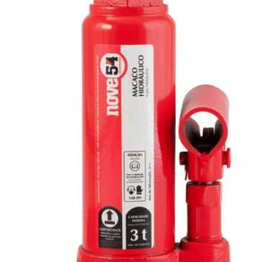 Macaco Hidráulico Garrafa 3 Toneladas 1 Estágio - Nove54 Conteúdo da embalagem 1 Macaco hidráulico tipo garrafa com 1 cabo de acionamento Aplicações e dicas de uso Indicado para elevação de veículos ou cargas de acordo com sua capacidade. Usar, armazenar e transportar somente na posição vertical para evitar vazamento de óleo. Quantidade total de óleo hidráulico: 68 ml Destaques e diferenciais Possui válvula de segurança para evitar elevação superior à sua capacidade, cabo dividido em 2 partes que facilita seu armazenamento e fuso de elevação com rosca que proporciona maior elevação e facilita o ajuste no momento da aplicação DETALHES TÉCNICOS