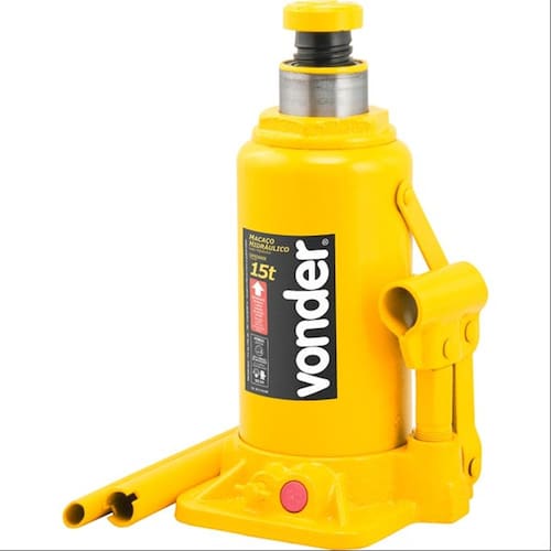 Macaco Hidráulico Tipo Garrafa 15 Toneladas Vonder Código do Produto: 51788 Descrição: Macaco Hidráulico Tipo Garrafa 15 Toneladas Vonder 1 estágio Com válvula de segurança para evitar elevação superior a sua capacidade Usar e armazenar somente na posição vertical para evitar o vazamento do óleo Acompanha cabo Embalagem: caixa individual Fuso com rosca para ajuste de altura Parafuso de ajuste Capacidade de carga: 15 toneladas Altura mínima: 230 mm Curso do pistão: 150 mm Curso do fuso: 80 mm Medida da base: 133 x 136 mm Especificações Técnicas Peso: 9,4 kg Indicação de uso em serviços de mecânica. Marca: Não Informado