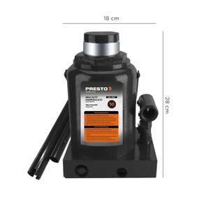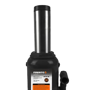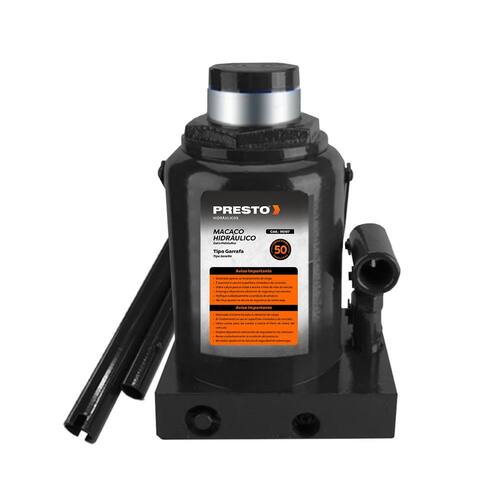 Macaco Hidráulico Tipo Garrafa de 50 Toneladas (50.000 kg) PRESTO, elevação manual, foi projetado p/ oferecer potência e precisão na elevação de veículos pesados.