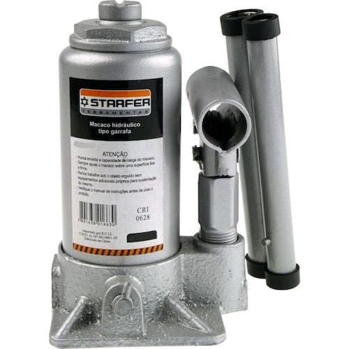 Macaco Tipo Garrafa 10 Toneladas Starfer é indicado para elevação de veículos ou cargas de acordo com a sua capacidade. Medidas de elevação: 20,5 cm á 40,5 cm