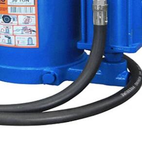Macaco garrafa hidro pneumático, reúne a segurança e estabilidade da hidráulica com a velocidade e praticidade do ar comprimido, tornando prático, rápido e leve a necessidade de elevar. Utilizado para reparos e manutenções na suspensão e rodas de veículos. Pressão necessária do ar comprimido para atingir a capacidade nominal do macaco 30 Ton = 100psi Ou 7 Bar de Pressão