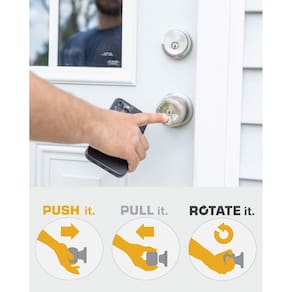 - Características: a tecnologia mãos livres da Brink's é a única fechadura de porta que abre as mãos livres de 3 maneiras: empurre, puxe-a ou gire. Com um cotovelo, quadril ou pulso, você pode abrir uma porta com o mínimo de toque simplesmente empurrando ou puxando o botão ou alavanca