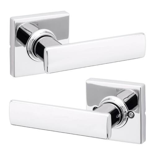 Kwikset Maçaneta de porta de passagem interna bretã, alavanca para portas de armário e corredor, alavanca reversível sem trava, cromado polido