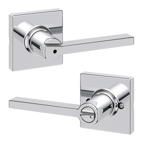 Kwikset Maçaneta de porta de privacidade interior Casey com fechadura, maçaneta de porta para banheiro e quarto, trava reversível cromada polida sem chave