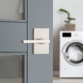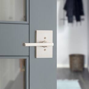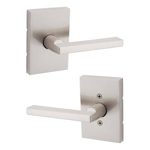 Kwikset Maçaneta de porta de passagem interna Halifax, alavanca para portas de armário e corredor, alavanca reversível sem trava, níquel acetinado, com proteção Microban