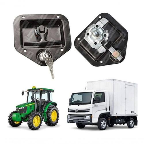 Maçaneta Externa Porta Linha Agrícola Baú Cabine E Uso Geral [f103] CONTEÚDO DA EMBALAGEM ------------------------------------------------- - Maçaneta Externa Inox Para Porta Com Chave Cor Preta - Uso Geral VEÍCULOS APLICÁVEIS
