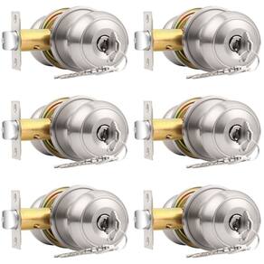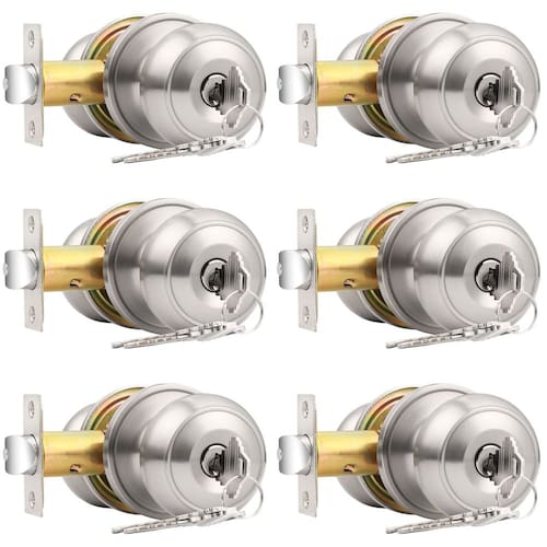 Especificações: Parte de trás: Ajustável para 60 mm ou 70 mm Espessura da porta: 1-3/20.3 cm ou 1-3/10.2 cm (35 mm-45 mm) Entrega: Esquerda, Direita, Reversível Diâmetro do botão: 5,7 cm (57 mm) Diâmetro da roseta: 6,5 cm (65 mm) Função de privacidade: Os conjuntos de maçanetas de porta de privacidade Probrico são trancados pelo interior com um giro de polegar, desbloqueados com um pequeno orifício de pino/moeda do lado de fora. Os puxadores de privacidade são ideais para banheiros, quartos ou qualquer lugar em que uma porta de bloqueio seja desejada, mas um cilindro com chave não é necessário. Fácil de instalar: A instalação é fácil, tudo o que você precisa é de uma chave de fenda e um pouco de tempo. Este conjunto é projetado para caber em portas de preparação padrão e a maioria das instalações deve levar menos de uma hora. Alta qualidade: Certificação ANSI Grau 3 que indica excelente desempenho em uma variedade de aplicações residenciais. Este produto é feito de materiais de alta qualidade para lhe dar segurança excepcional - Confirme com ANSI Grau 3, excede 200.000 ciclos; cilindro de latão resistente a palhetas de 5 pinos, chave de latão niquelado. Resistente ao desgaste e à corrosão - Acabamento de níquel escovado: anti-impressão digital, mais atraente, durável e livre de ferrugem; alça esférica moderna, sem bordas afiadas, arredondada sem machucar as mãos - Maçaneta de porta com chave de entrada com função de trava e chave: utilizado em portas externas onde é necessária entrada com chave e segurança; todo o pacote combo terá a mesma chave - As travas têm um assento traseiro ajustável de 2-3/20.3 cm a 2-3/10.2 cm para caber em todos os preparativos de porta padrão: Serve para espessura da porta: 35 mm a 45 mm); Reforçar a trava prolonga efetivamente a vida útil da fechadura da porta. Ele garante que a porta esteja silenciosa e também possa ser resistente a impactos, para que você não tenha medo de bater na porta - Operação universal/reversível: adequado para portas direita e esquerda; Lista de acessórios: Maçaneta selecionada, trava sólida, parafusos, chaves, instruções de instalação e todas as ferragens de montagem necessárias. A instalação é muito fácil