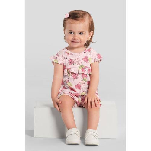 Encante-se com o macaquinho bebê menina da Brandili, confeccionado em ribana suave, perfeito para o conforto da sua pequena. Com uma linda estampa de flores e delicados babados, esse macaquinho possui mangas curtas e gola redonda, ideal para os dias quentes. Invista em looks práticos e cheios de charme para as pequenas exploradoras. Combine com sandálias e um chapéu para um visual adorável e estiloso!